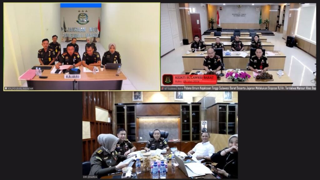Pada Hari Rabu, 08 Mei 2024. Bertempat di ruang vicon Kejaksaan Negeri Polewali Mandar, Kepala Kejaksaan Negeri Polewali Mandar Bapak Muh. Zulkifli Said, S.H., M.H. didampingi Kasi Pidum Bpk. Herry Slamet Santoso, S.H., Jaksa Fasilitator Alif Yolanda Putra, S.H., dan Utari Andani Putri Darmawangsa, S.H., melakukan pengajuan Restorative Justice yang di hadiri secara virtual oleh Kepala Kejaksaan Tinggi Sulawesi Barat beserta jajaran dan Jajaran Jaksa Agung Muda Pidana Umum, adapun pengajuan Restorative Justice merupakan Tindak pidana yang dilakukan Tersangka adalah “Penganiayaan terhadap Anak” sebagaimana yang diatur dalam Pasal 80 Ayat (1) Jo. Pasal 76 C Undang-Undang RI No. 17 Tahun 2016 Tentang Penetapan Peraturan Pemerintah Pengganti Undang-Undang No. 1 Tahun 2016 Tentang Perubahan Kedua Atas Undang-Undang RI No 23 Tahun 2002 Tentang Perlindungan Anak.