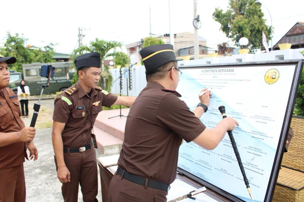 Pada hari Senin 29 Januari 2024 bertempat di halaman Kejaksaan Negeri Polewali Mandar seluruh pegawai melaksanakan Apel Pencanangan dan Penandatanganan Komitmen Bersama Wujudkan Wilayah Bebas dari Korupsi (WBK) dan Wilayah Birokrasi Bersih Melayani (WBBM) Tahun 2024.