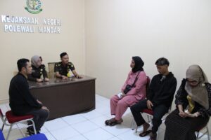 Hari Kamis, 16 Mei 2024. Bertempat di ruang vicon Kejaksaan Negeri Polewali Mandar, Kepala Kejaksaan Negeri Polewali Mandar Bapak Muh. Zulkifli Said, S.H., M.H. didampingi Kasi Pidum Bpk. Herry Slamet Santoso, S.H., Jaksa Fasilitator Muhammad Yasin Wawo, S.H., dan Muhammad Yunus, S.H., melakukan pengajuan Restorative Justice yang di hadiri secara virtual oleh Kepala Kejaksaan Tinggi Sulawesi Barat beserta jajaran dan Jajaran Jaksa Agung Muda Pidana Umum diwakili oleh Direktur Oharda, adapun pengajuan Restorative Justice merupakan Tindak pidana yang dilakukan adalah “Penganiayaan” atas nama Tersangka Wahid Bin Jais Irpan yang disangka melanggar Pasal 351 ayat (1) KUHPidana.