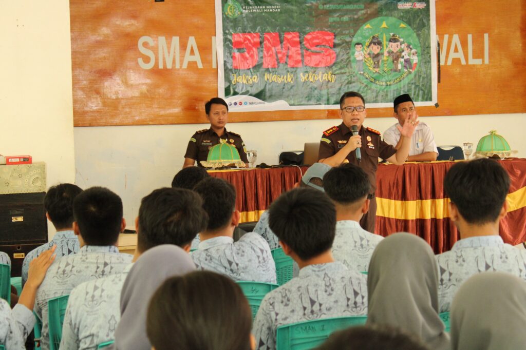 Polewali Mandar – Jaksa Masuk Sekolah adalah merupakan bentuk kegiatan penerangan dan penyuluhan hukum yang dilaksanakan dengan sasaran kegiatan khusus ditujukan kepada generasi muda usia sekolah sejak tingkat pendidikan dasar hingga pendidikan tinggi dengan maksud untuk meningkatkan kesadaran hukum sehingga generasi muda memiliki pemahaman, kesadaran dan melaksanakan hak, kewajiban dan tanggung jawab sebagai warga Negara.